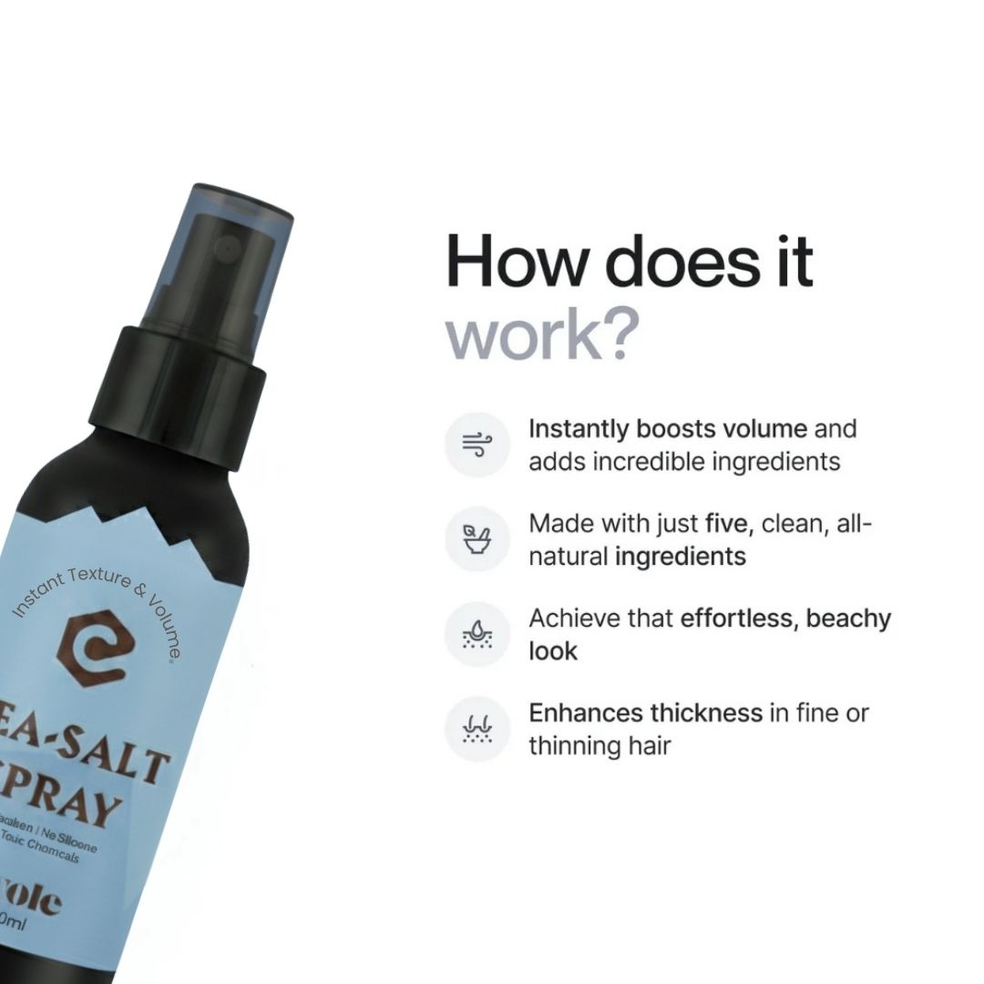 Because this is a leave-in treatment, we ensure it meets the highest standards of safety and purity. This sea salt spray is formulated to be effective and gentle, upholding the EVOLE promise of being free from parabens, silicones, and toxic chemicals.